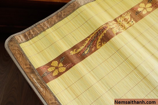 Không chỉ có Viền biên chung quanh, chiếu Tăm còn có các họa tiết thêu sắc sảo, Chiếu có thể gập đôi theo chiều rộng rất linh hoạt khi cần thiết.
