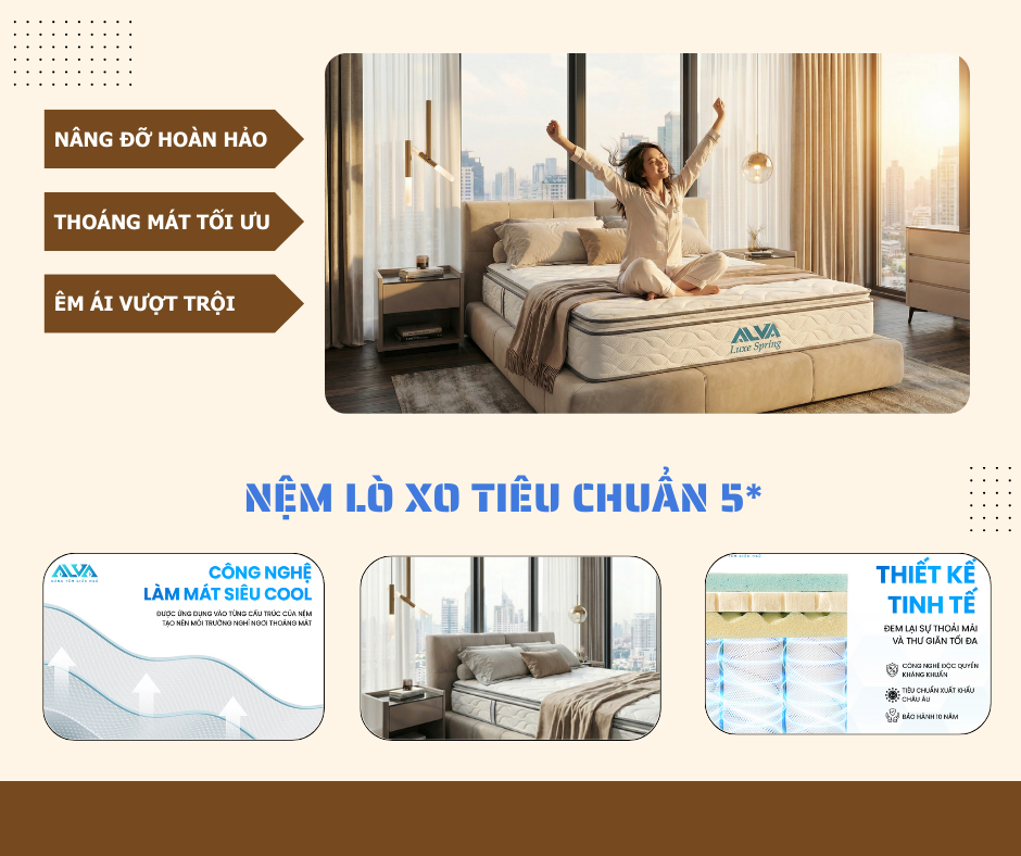 ALVA LUXE SPRING - NỆM LÒ XO CAO CẤP CHUYÊN DÙNG CHO CÁC KHÁCH SẠN, RESORTS.