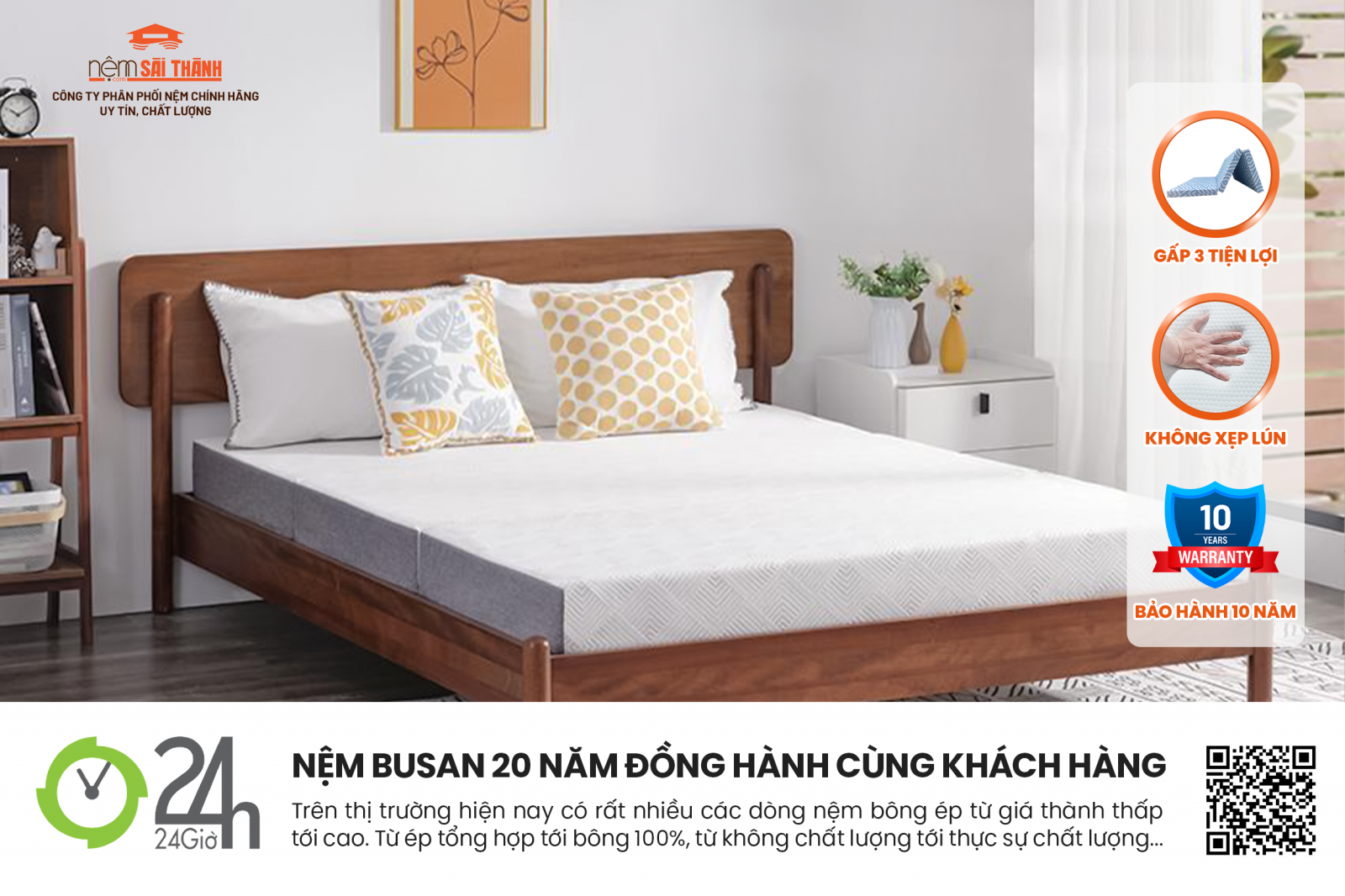 B. NỆM BÔNG ÉP - BUSAN BẢO HÀNH 10 NĂM: NỆM CỨNG - ĐỘ PHẲNG CAO, KHÔNG XẸP LÚN, NẰM THẲNG LƯNG.