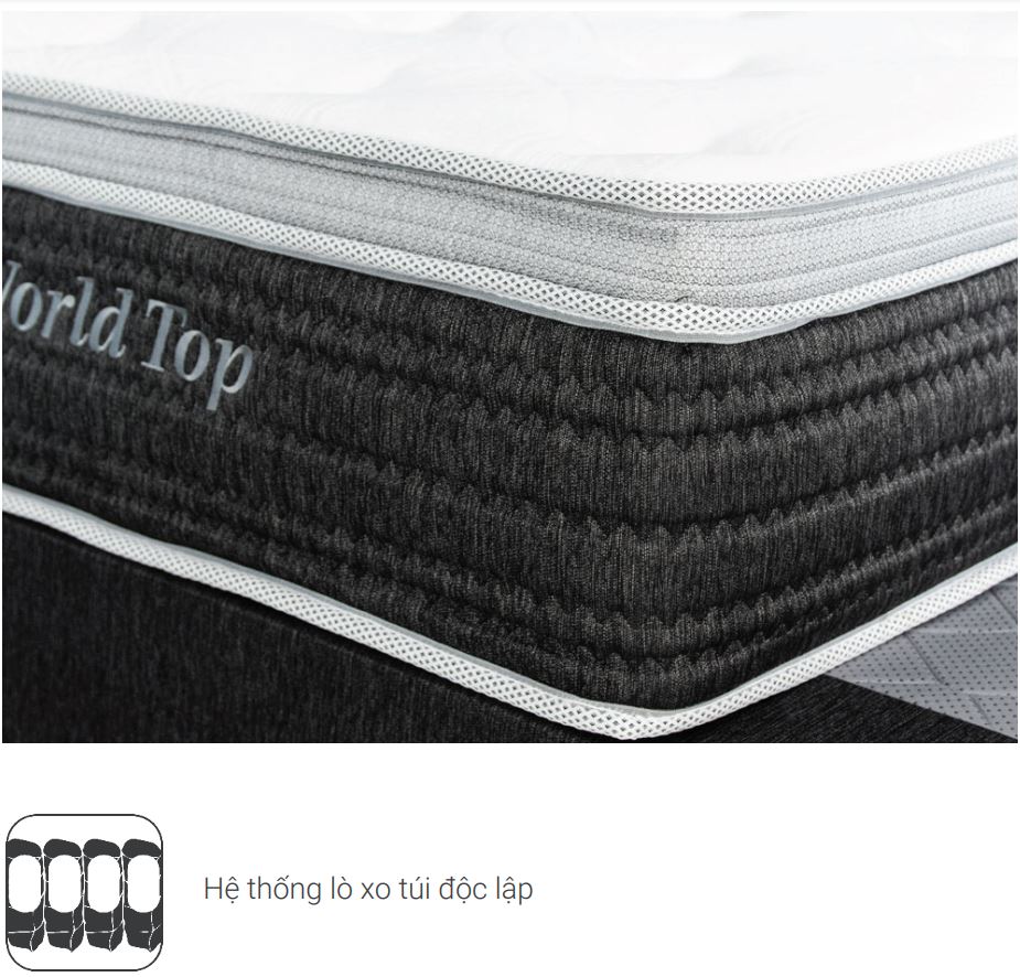 Đặc biệt: Nệm lò xo King Koil World Top có thêm lớp toplux phía trên bề mặt nệm nhằm gia tăng sự êm ái, dễ chịu